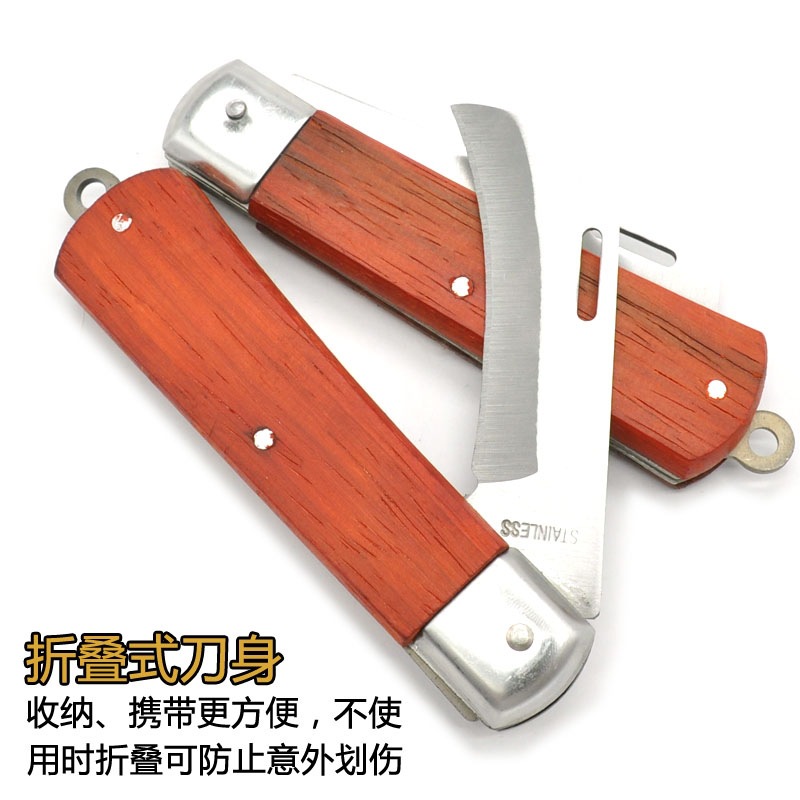 卸売り電気工刀木柄折り畳み直刃曲げ刃多機能特殊鋼剥皮線刀電線刀工具