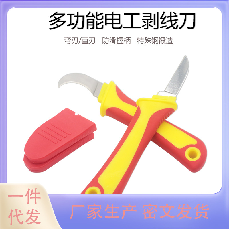 絶縁電気ナイフ曲げ刃直刃プラスチック柄電気ナイフ多機能ケーブル剥離線刀ケーブル切断工具