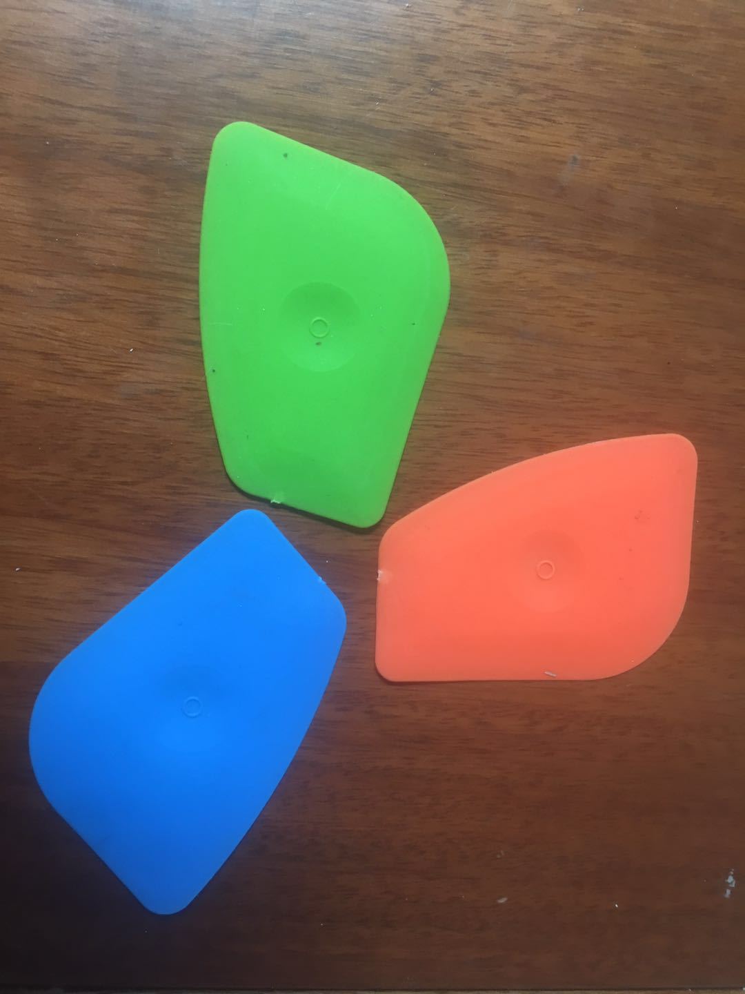 平スクレーパーを探してパテを剃ります。赤いスクレーパーを越えてパテのスクレーパーを越えます。