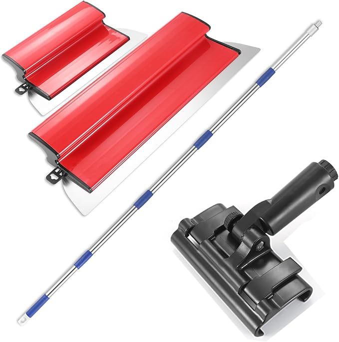 石膏ボード用スクレーパーセット、10インチ & 16インチのステンレススチールブレード + 34-80インチの伸縮ロッド。