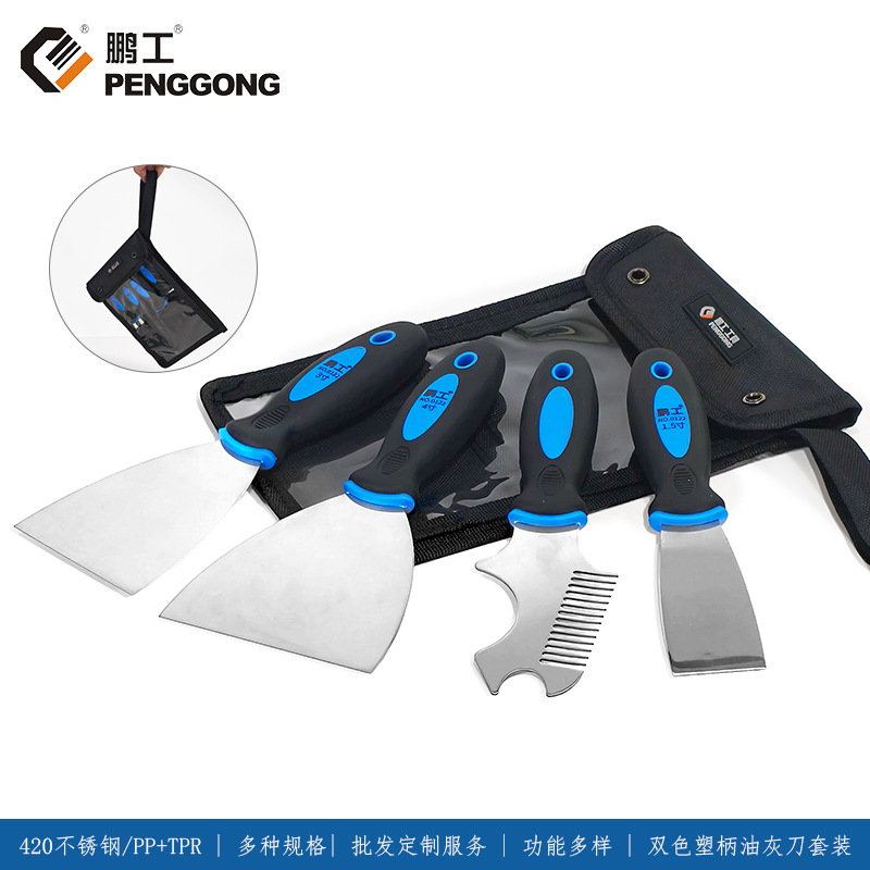 壁面平滑化用スクレーパーツールセット、壁面平滑化用パテスクレーパー、ステンレス製パテナイフ、平滑化用パテこすり器