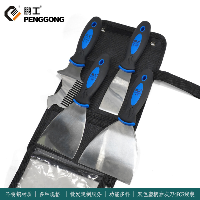 メーカーは、青い鋼ストリップ 200-350mm を備えた 2 色のプラスチック ハンドルのグリース スパチュラを供給しています。