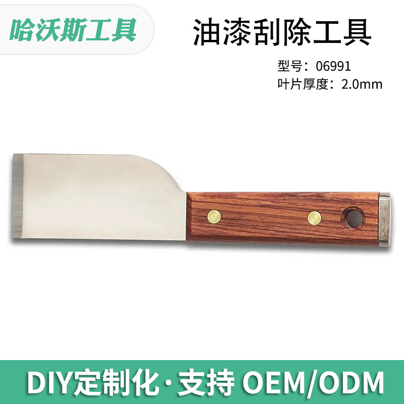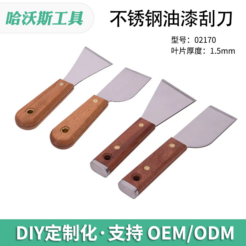 ステンレス鋼ペイントスクレーパー、パテスクレーパー、厚さ1.5mmのクリーニングスクレーパー、木製ハンドルのパテナイフツール