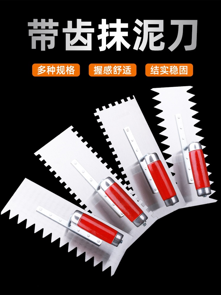 灰刀ステンレス鋸の歯を塗る泥刀の泥瓦工はタイルを貼って灰刀の泥板のツールの四角い歯のほこりのスプーンを承認します。