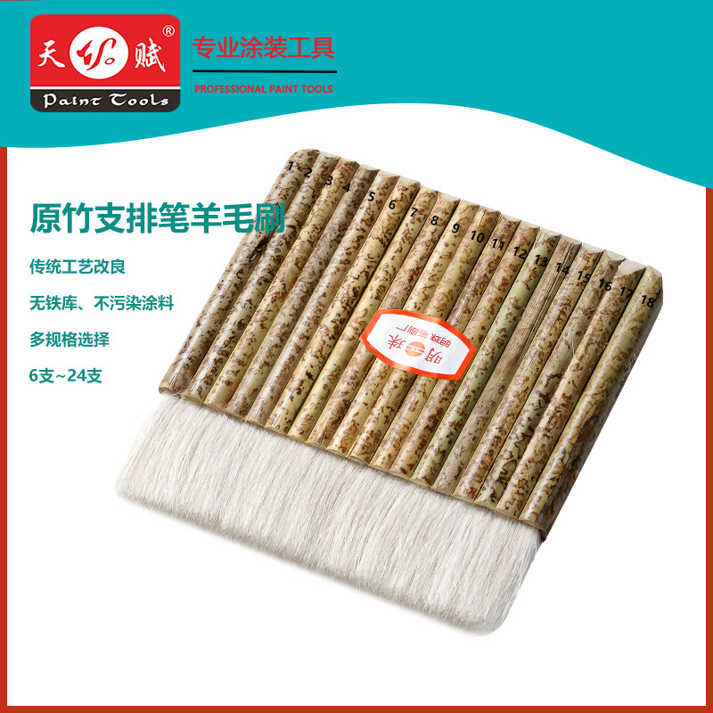 明珠ブランドの国画の表装画は竹管の厚いウールのブラシのペンキを塗って柔らかい毛を並べて表装して道具を並べます。