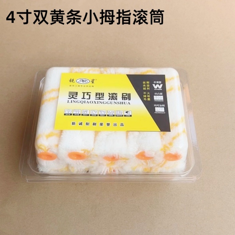 卸売り4インチ化学繊維小指ローラーブラシ黄青灰条熱溶融死角のない小さな角ローラーツールブラシ