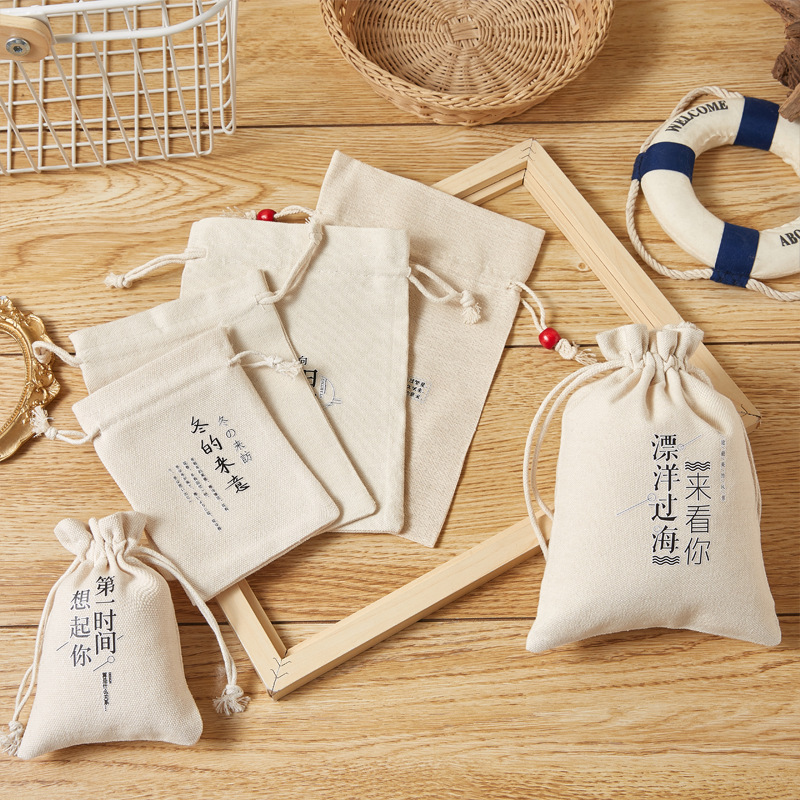 二重線綿麻ロープ束口布袋創意文字プレゼント包装袋キャンディープレゼント収納袋はロゴを決めることができる
