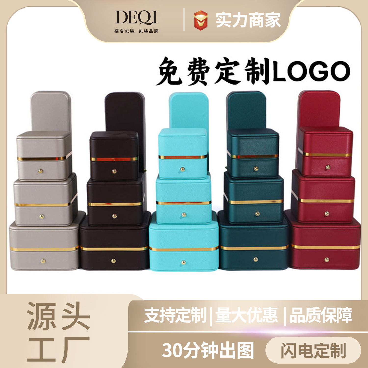 高級丸みを帯びた金辺pu皮革レイシ紋アクセサリー箱指輪ネックレスジュエリー包装箱アクセサリー収納箱