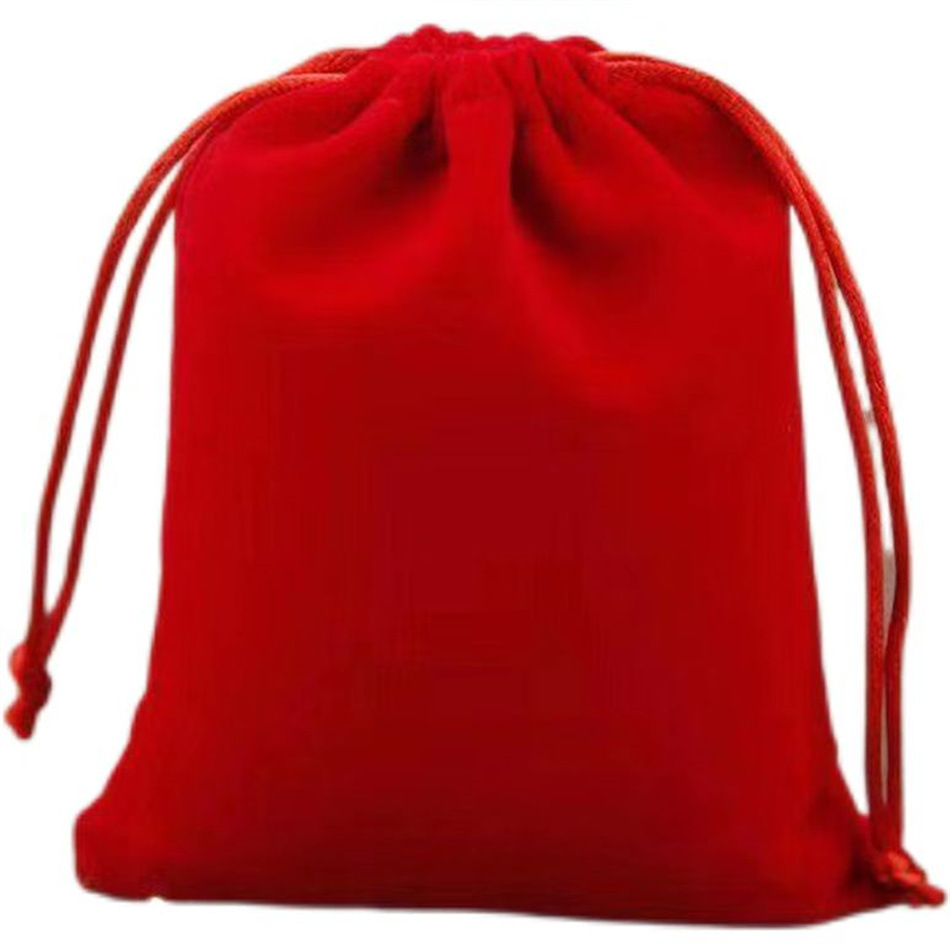 100個のアクセサリー包装袋赤いベルベット袋福袋バッグ錦嚢クルミ文游袋束口小布袋
