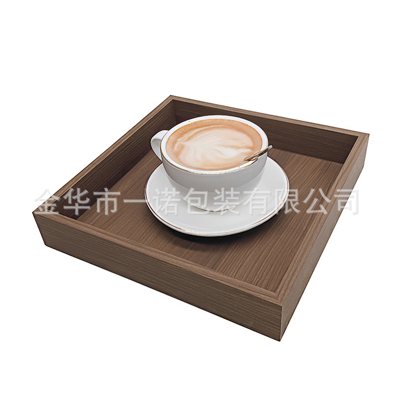 現物は黒胡桃紋の木製の四角い家庭用のお茶のトレーを提供しています。