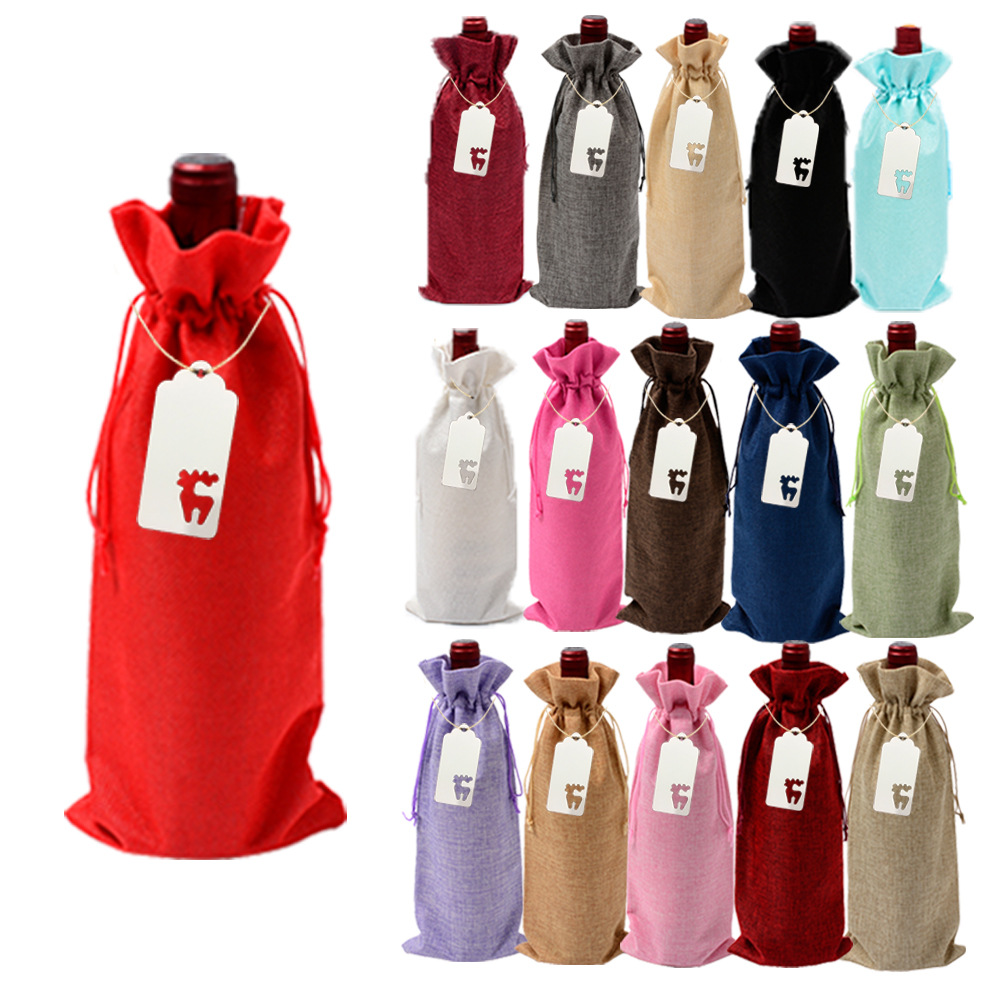 1-10pcs巾着袋麻布酒瓶袋セット750mlシャンパンワインプレゼント袋現物