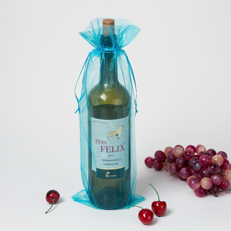 欧根紗束口紅酒袋14*37多色シャンパンワイン防塵透明糸袋赤ワインギフト糸袋