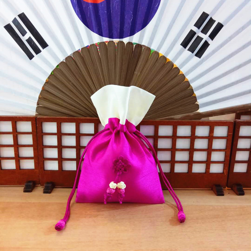 中国風の縄を引いて袋を締めます。