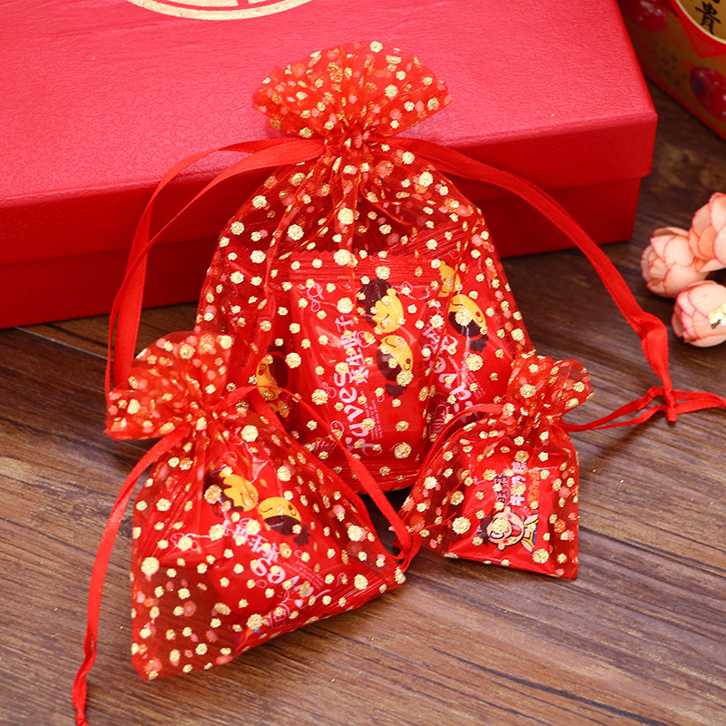 結婚喜糖紗袋蝶結びのワインレッドの結婚祝い福袋キャンディーのお菓子袋のプレゼントは袋を締めます。
