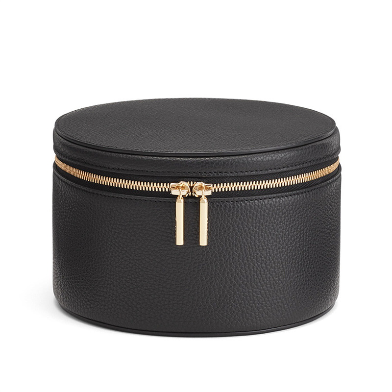 メーカー卸売りpu多機能ジュエリー収納ケース円形立体レイシ柄ジッパーネックレス指輪収納ケース