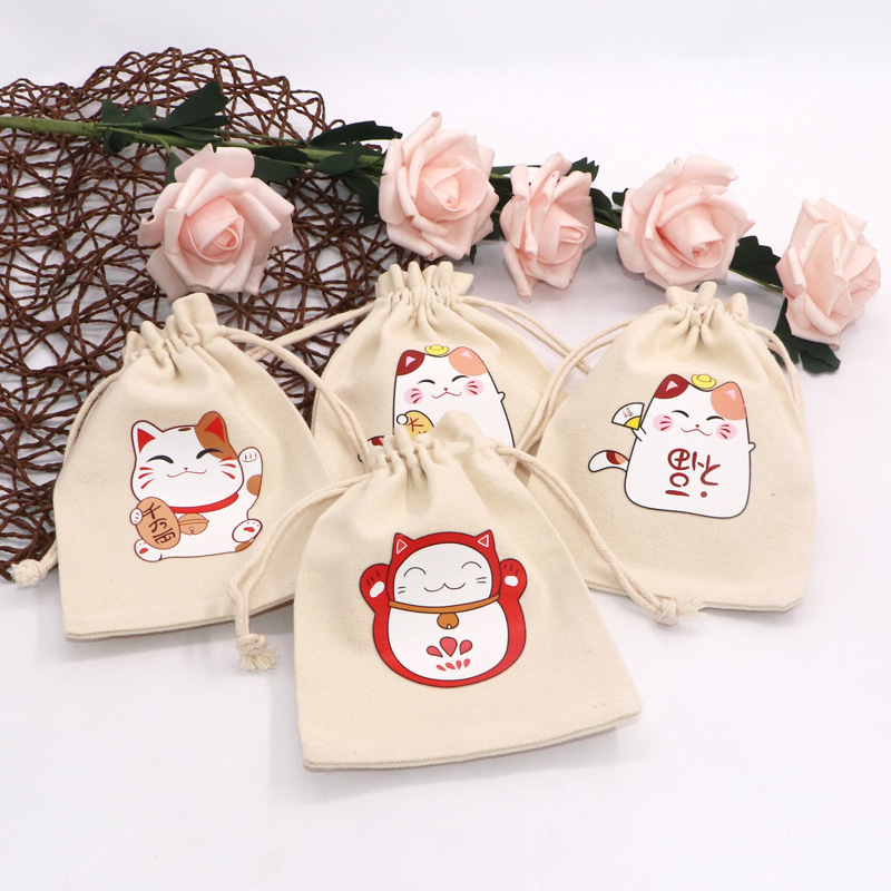 現物超厚実キャンバスバッグ招き猫引き紐ポケットキャンディープレゼント袋化粧品サンプル収納袋