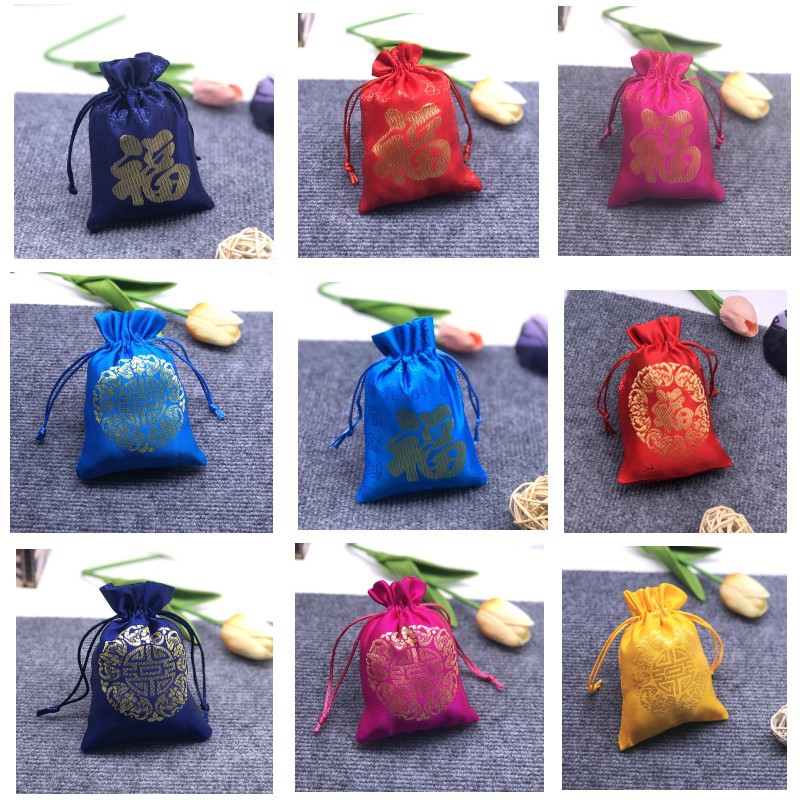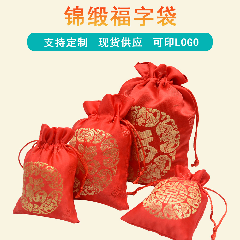 ウェディングギフト福袋赤刺繍福字喜糖袋ジュエリーギフト包装収納ポケット卸売り