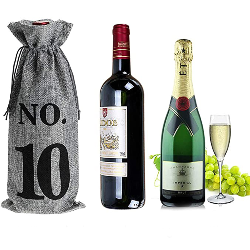 1-10番デジタル麻布酒瓶袋セット亜麻紐引きポケットシャンパンワイン袋現物卸売り