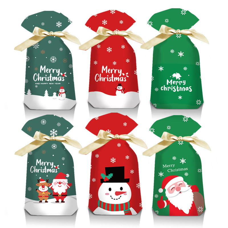 新しいクリスマスの現物の図案のプラスチックの縄を引く贈り物の袋のリボンのキャンディーの袋の新年の口のクリスマスの袋の卸売り