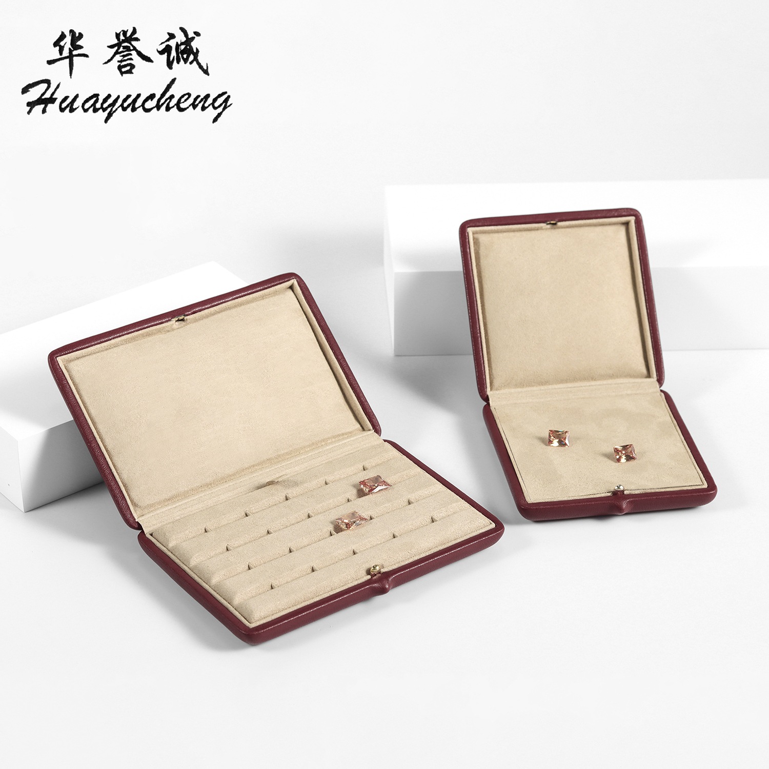 パン型フリップトップ高級レザー製ジュエリーボックス、裸石収納ボックス、ロゴ入りジュエリーボックス、ジュエリーギフトボックス