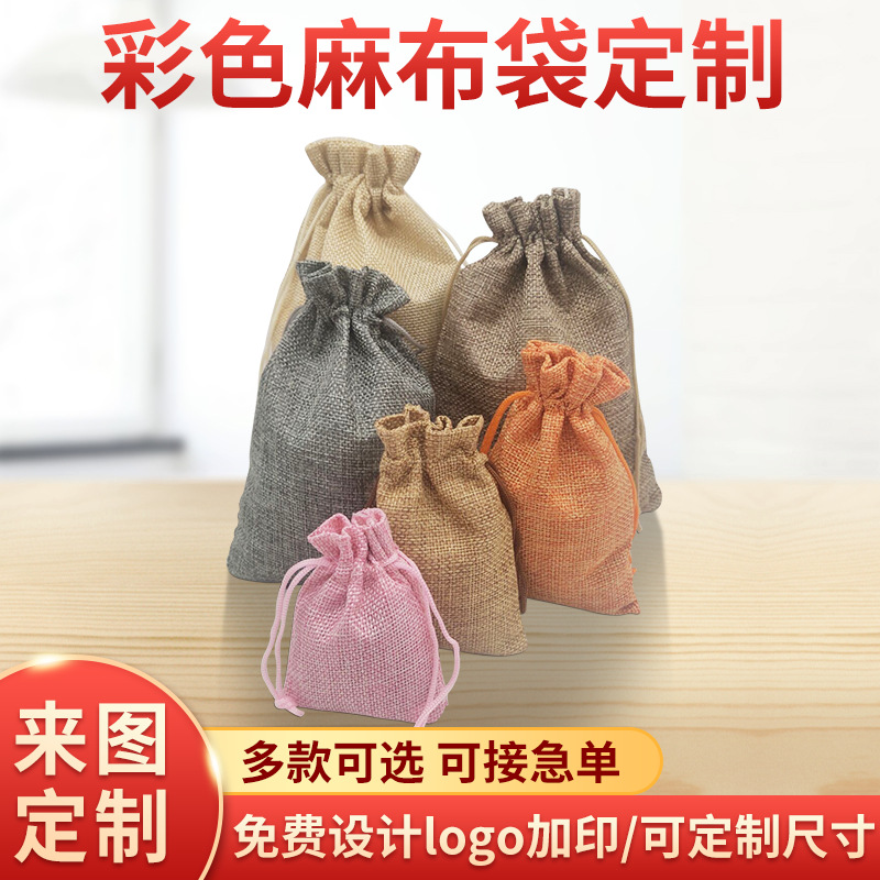 巾着リネン巾着袋茶ギフトジュエリー包装コットン麻袋巾着カラー巾着袋現物