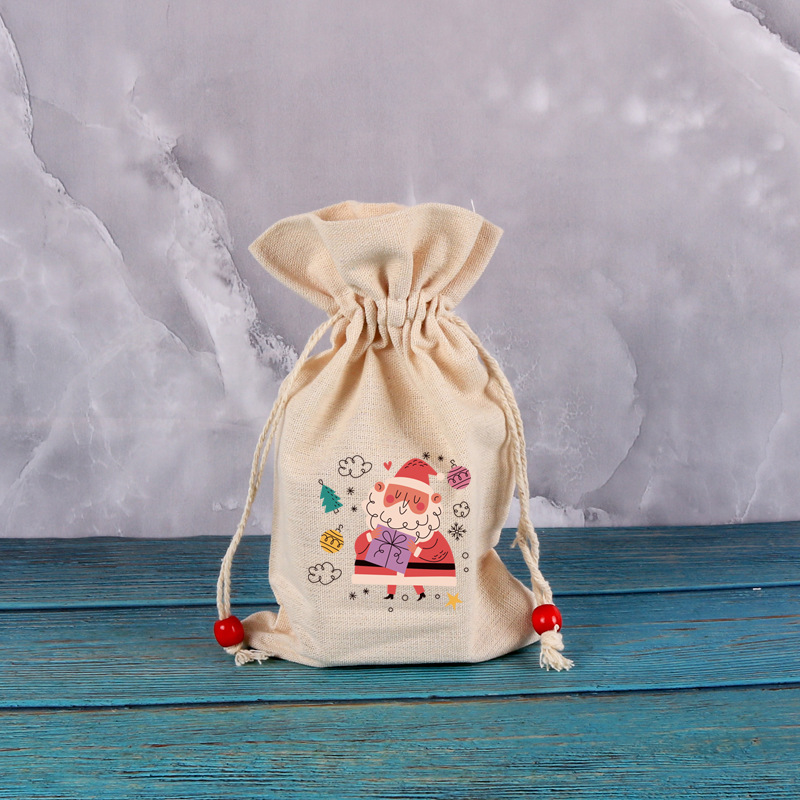 クリスマスプレゼント包装袋ビーズ綿プリントかわいいアニメ模様綿麻袋リンゴキャンディープレゼント