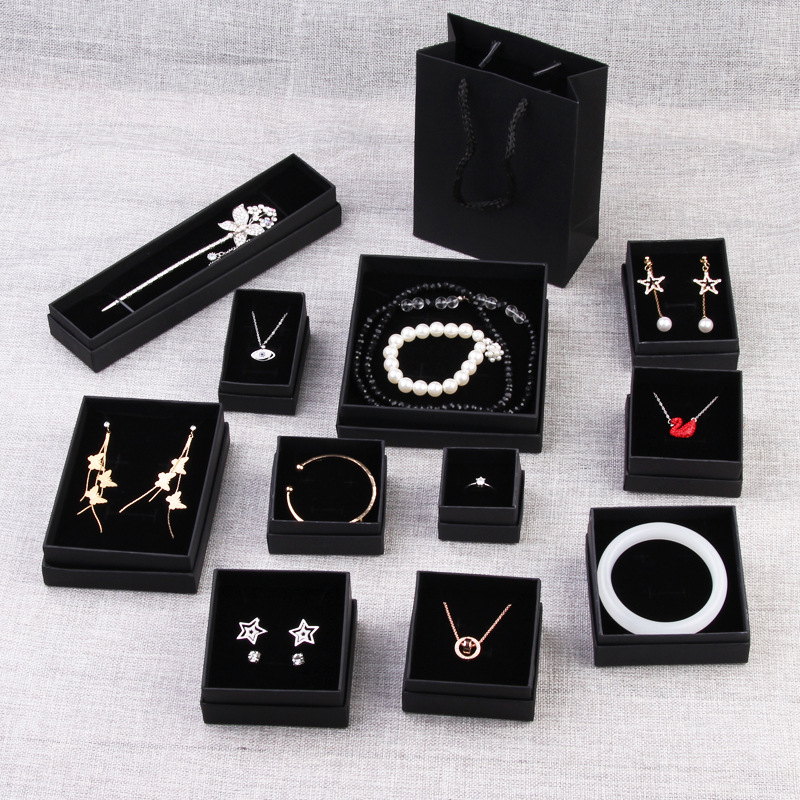 純色の黒いカードのアクセサリーの箱の指輪のピアスのネックレスのペンダントのブレスレットのイヤリングのジュエリーの贈り物の包装の箱