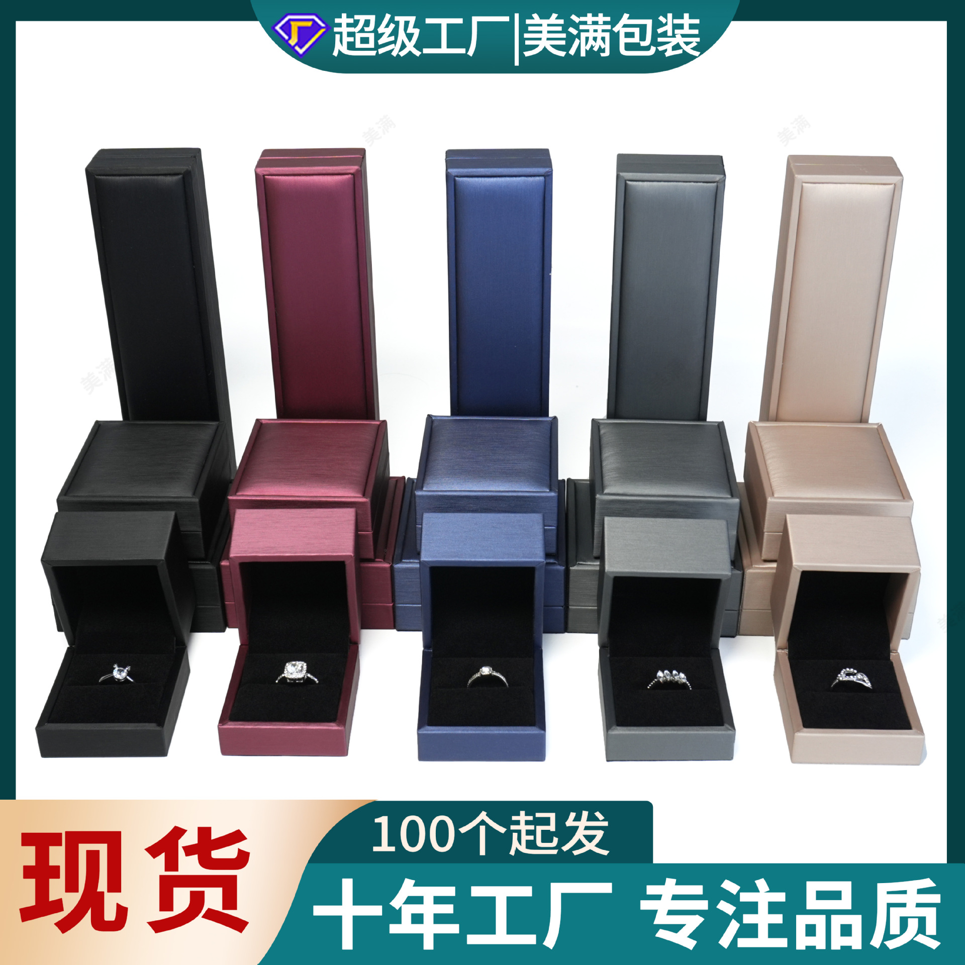 在庫あり ラッシュ加工PUレザー ジュエリー包装 リングボックス ライトラグジュアリー 高級ネックレス ブレスレット ロングチェーン ジュエリーボックス 卸売