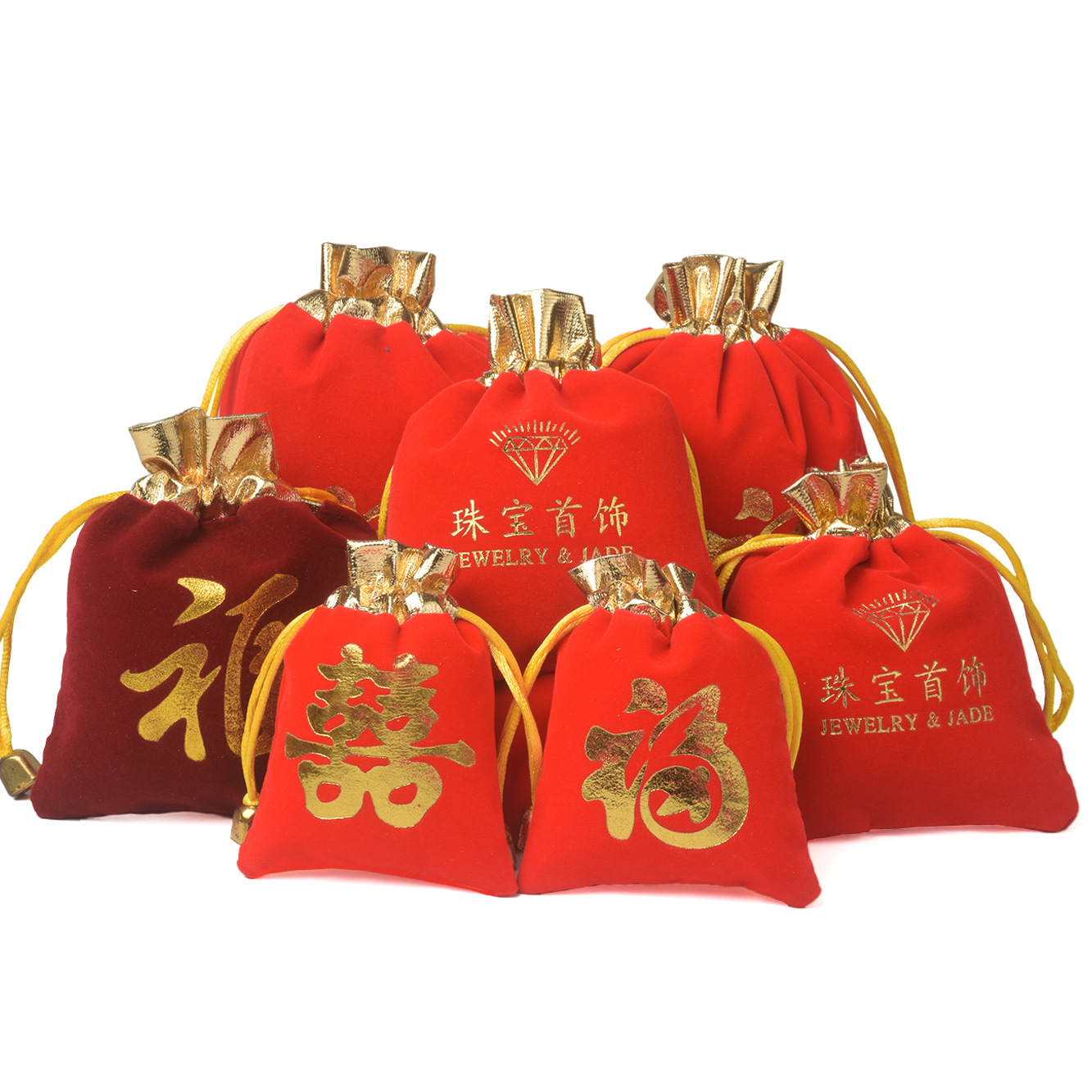 メーカー卸売り金辺ベルベット袋宝飾品アクセサリー包装印刷各種宝飾品玉器ベルベット福袋
