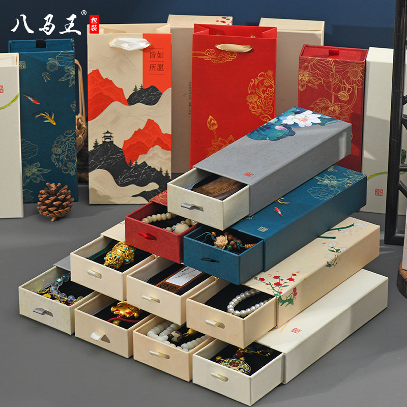 レトロな高品質引き出しタイプ中国風長方形香包装箱仏ビーズ車のペンダントヘアコームギフトボックス