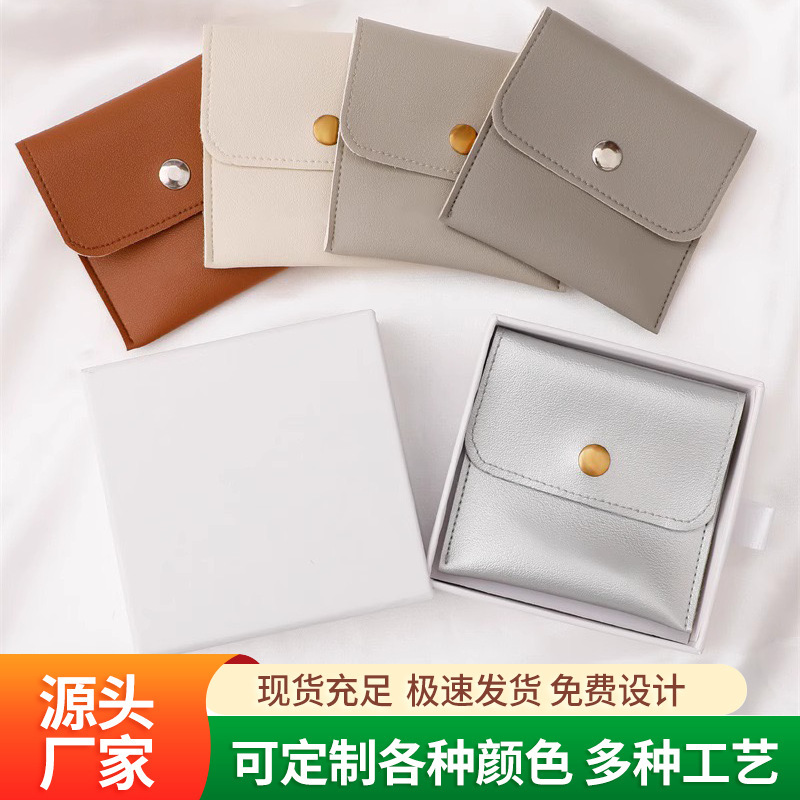 新しい革製スナップボタン付きジュエリーギフトバッグ、PUジュエリー包装収納リング、アクセサリーブレスレット、フリップカバーバッグ