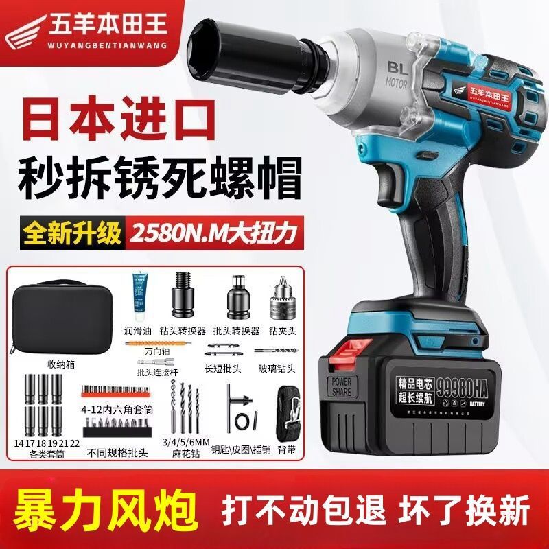 日本輸入電動レンチリチウム電池ヘビーデューティ自動車修理衝撃強力な風砲自動車修理高トルク充電ボード