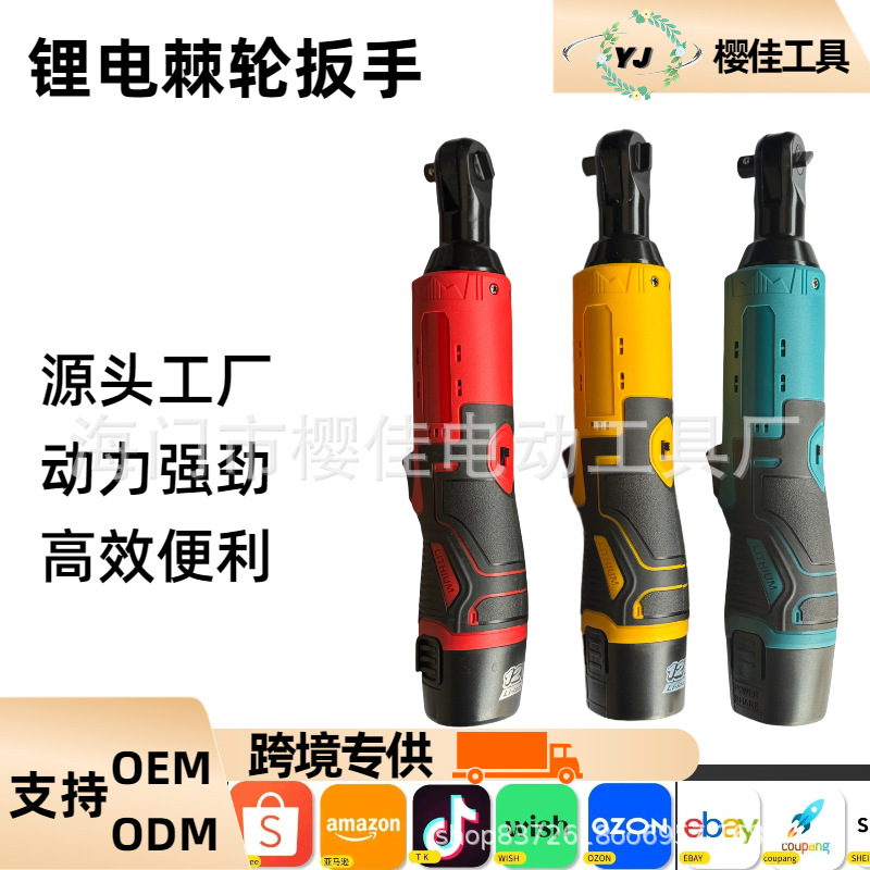 12Vリチウム電気電動ラチェットレンチセット自動車修理ツール車載コードレスレンチ角直角曲げ器