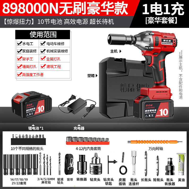 ブラシレスリチウム電気インパクトレンチ木工ドライバー多機能電動電動レンチ充電ツール家庭用セット