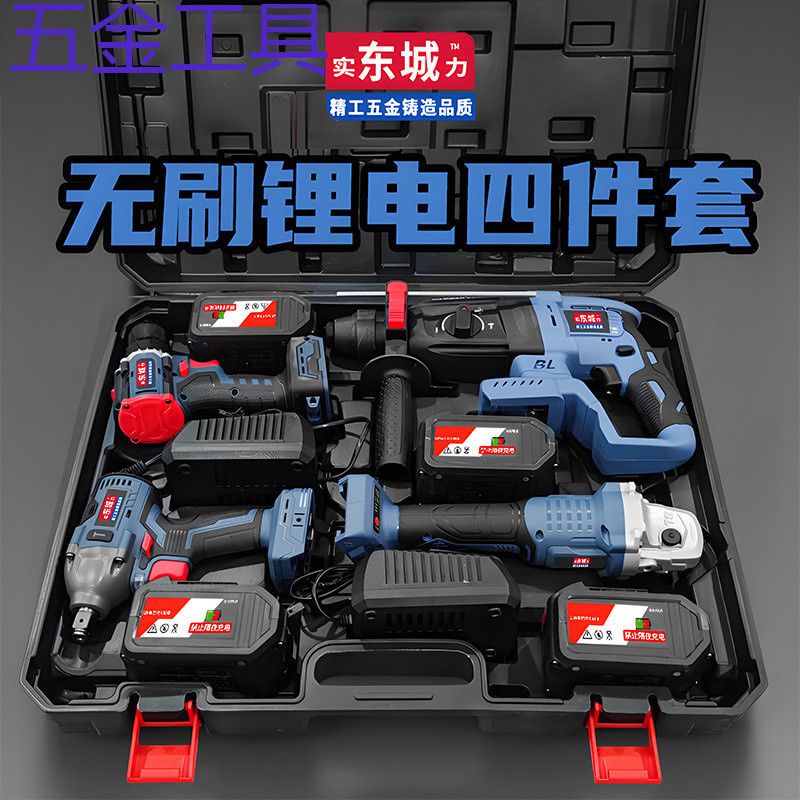 ブラシレス充電式電動ハンマーインパクトドリル電動ハンマー角研削盤電動レンチ4点セットツールセット電動ハンマーコンプリートセット