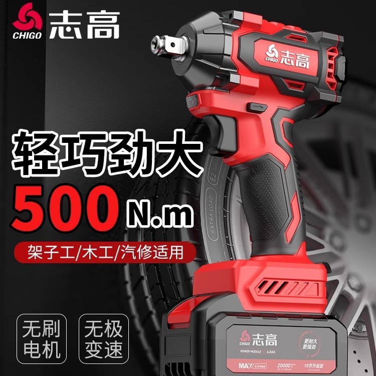 Chigo ブラシレス電動レンチ高トルクタイヤ専用充電式インパクト風力砲電動レンチソケットツール