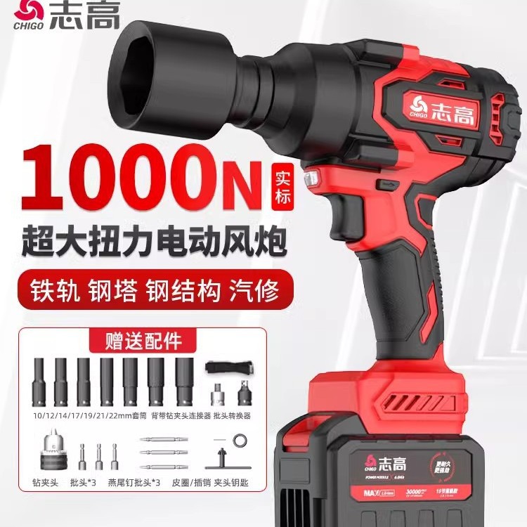1000N叩き電動レンチブラシレス充電衝撃リチウム電気木工棚工風砲自動車修理スリーブツール