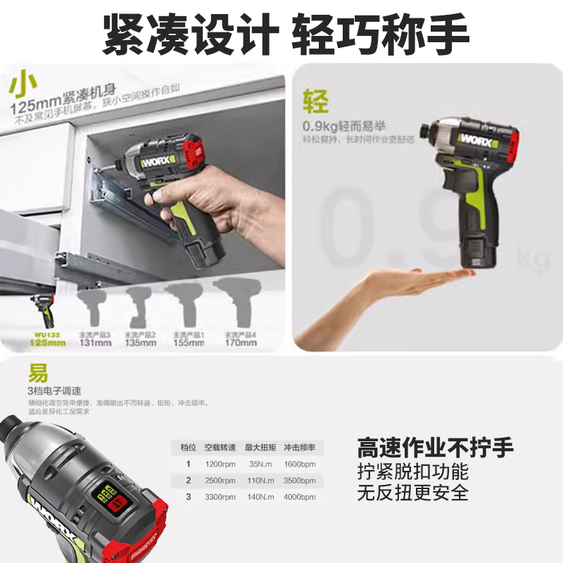 ウェックスブラシレスリチウム電気衝撃ドライバーWU132X電気バッチ充電電動ドライバー電動工具129
