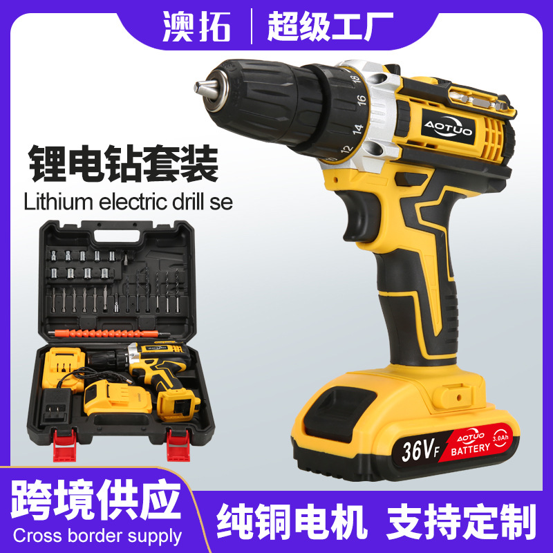 国境を越えた新型リチウム電気充電ドリル充電式多功ピストルドリル電動ドライバードライバー電気ドリル