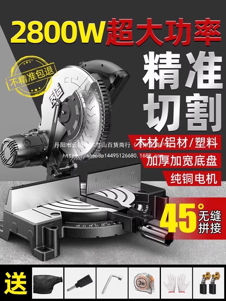 12寸双斜拉杆锯多功能45度高精度木材铝合金切割机斜切锯界麦太保
