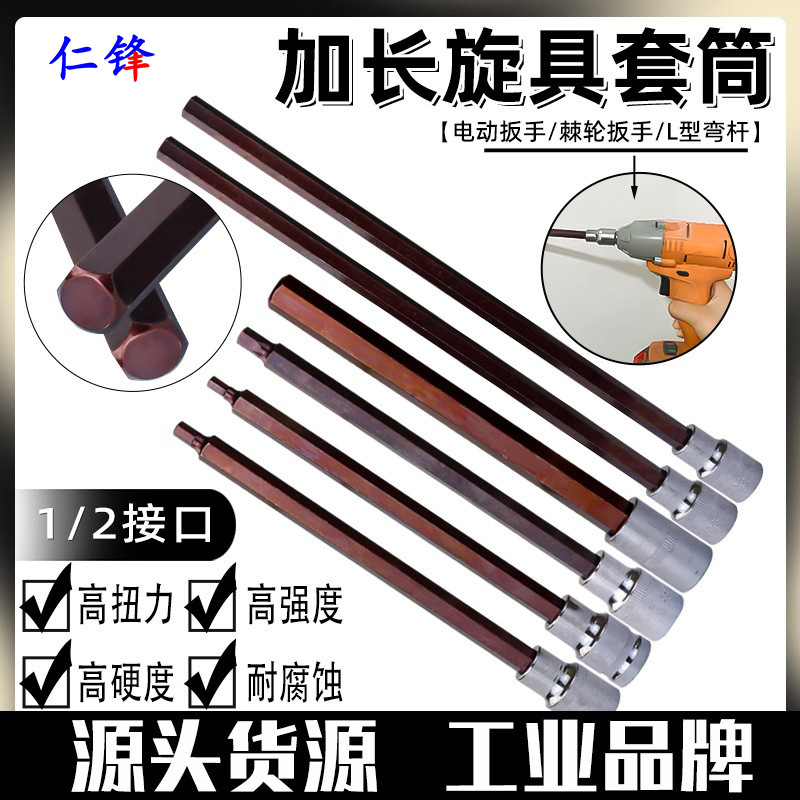 エクストラロングS2六角ソケット1/2電動レンチ六角ビットセットコンビネーションエアガンドライバーソケットヘッド