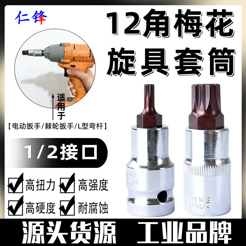 55mm12 角ドライバーソケット 梅花風砲花型ソケット 1/2 電動レンチソケット バッチヘッド 四角プレスバッチ