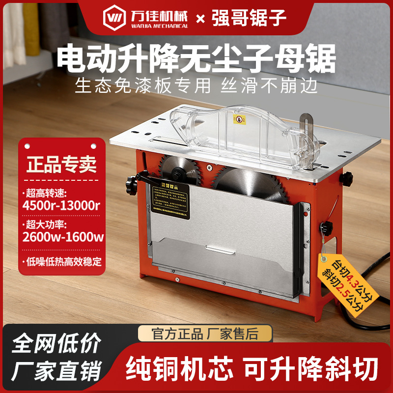 万佳子の母の鋸の規格品の木工の専用の台の鋸は昇降して45静音でブラシなしで子の母のクリーンな鋸の新型を調節します。