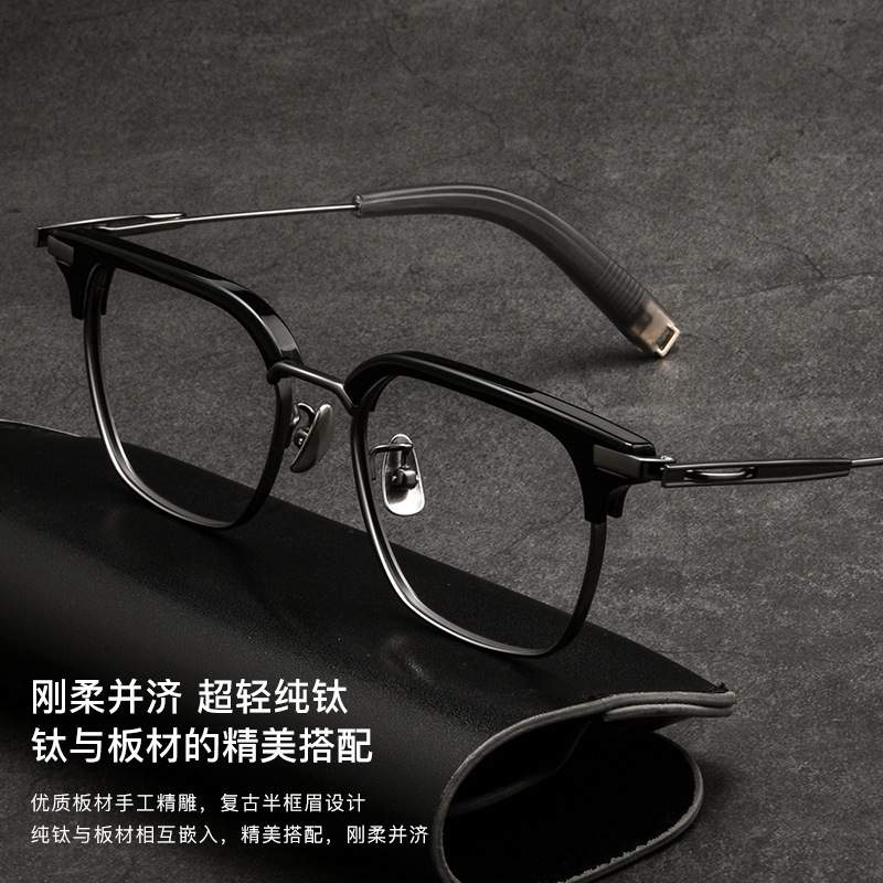 新品bsf9009tビジネスハーフチタンメガネフレーム祭り高升竹祭りデザインメガネフレームレトロメガネ