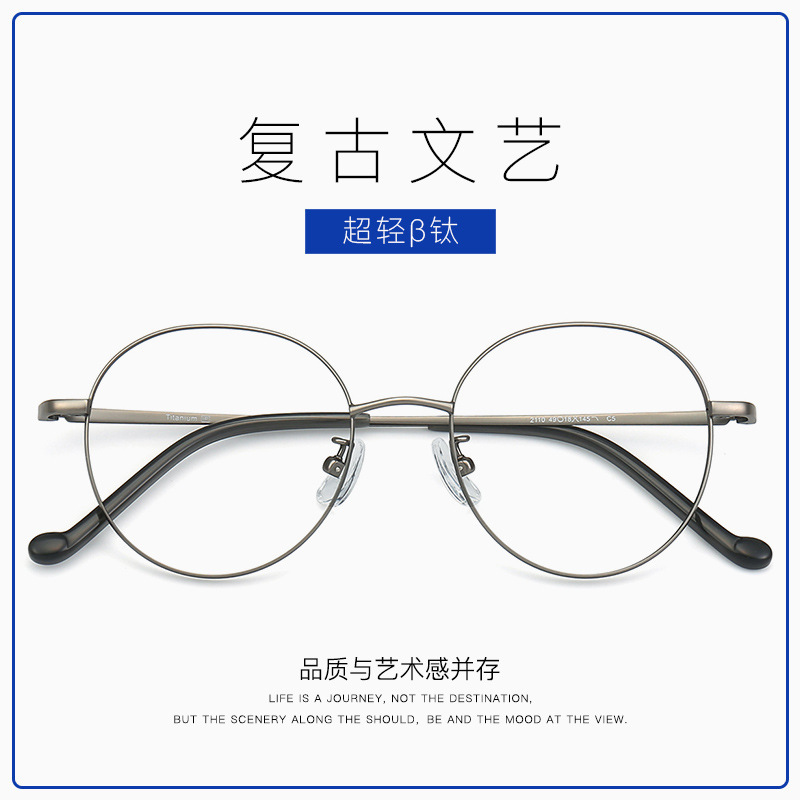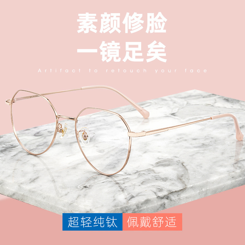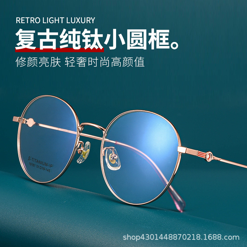 Bチタン近視眼鏡枠円枠レトロ女性平光眼鏡フレーム純チタン近視眼鏡19181