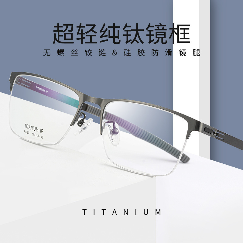新bsff1983ビジネス半枠メンズ額縁カジュアルスポーツ大枠メガネ純チタンメガネ枠