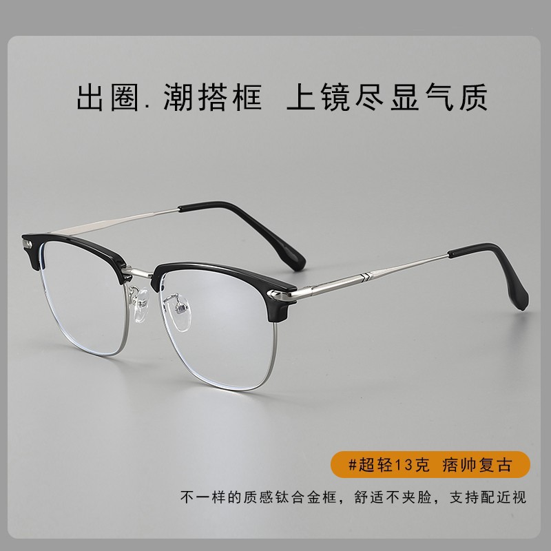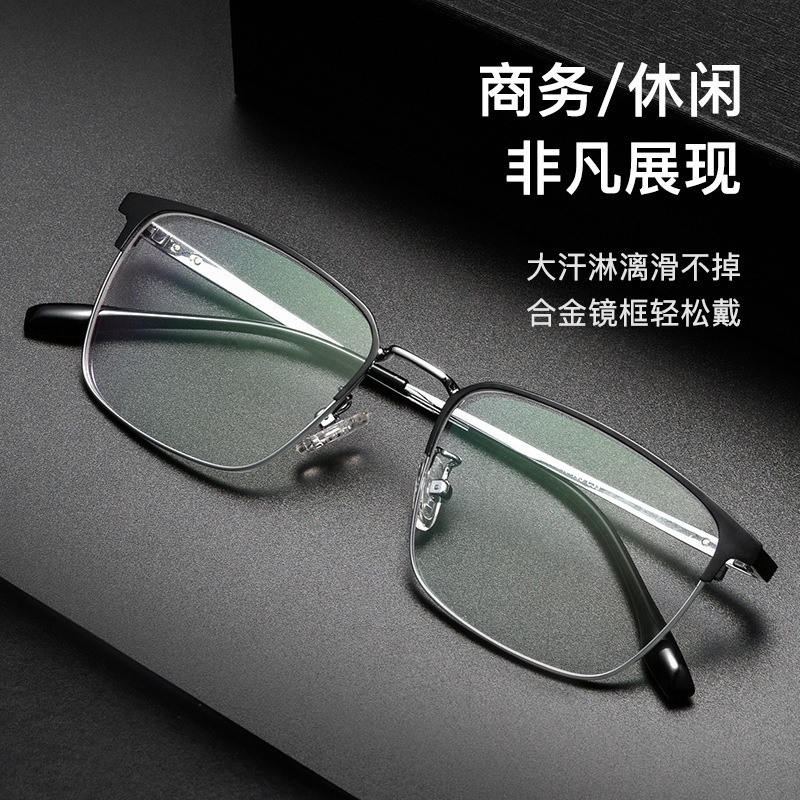 半枠メガネフレーム男性韓国版潮完成品近視メガネ