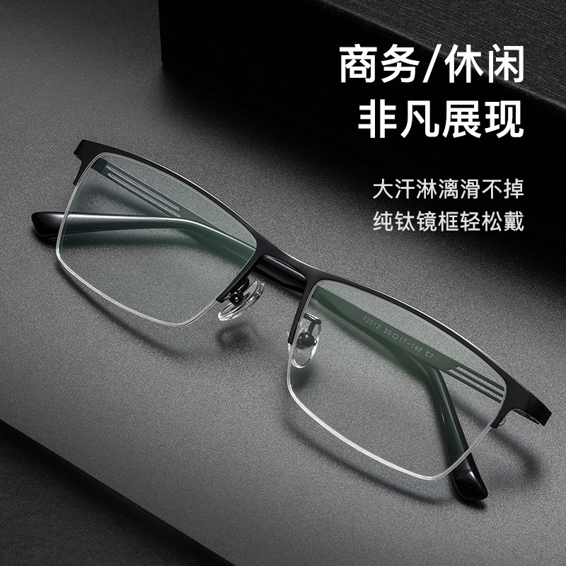 新品bsft2012ビジネスメンズフレームハーフフレームメガネフレーム近視メガネ純チタンメガネフレーム