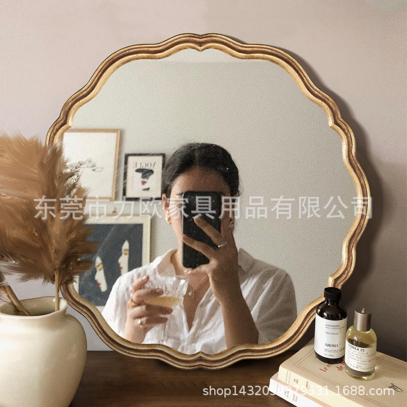 ヨーロッパのレトロなフレーム壁掛けミラー装飾玄関リビングルーム廊下背景壁装飾寝室の化粧鏡化粧鏡