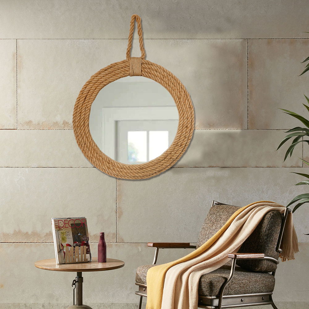 予約が必要 * 手作り麻縄編み欧米円形客間寝室掛け鏡浴室掛け壁飾り創意鏡